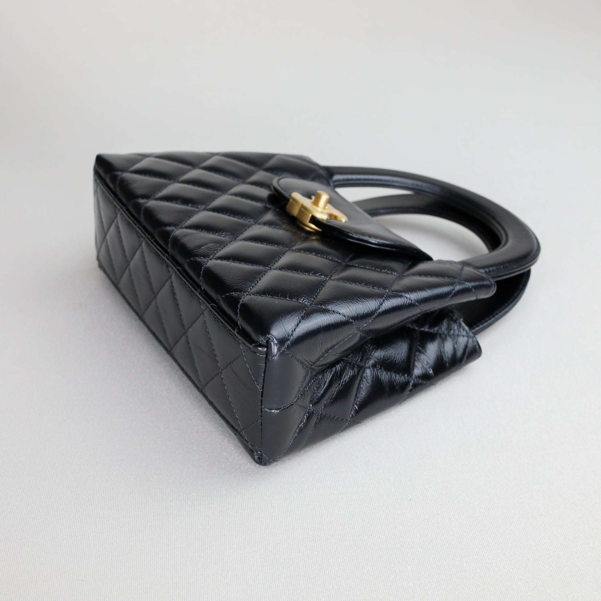 Chanel Kelly Nano Black Calf Skin Top Handle Shopping Bag